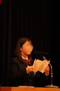 在校生からの送辞は卒業する先輩への温かなメッセージでした。